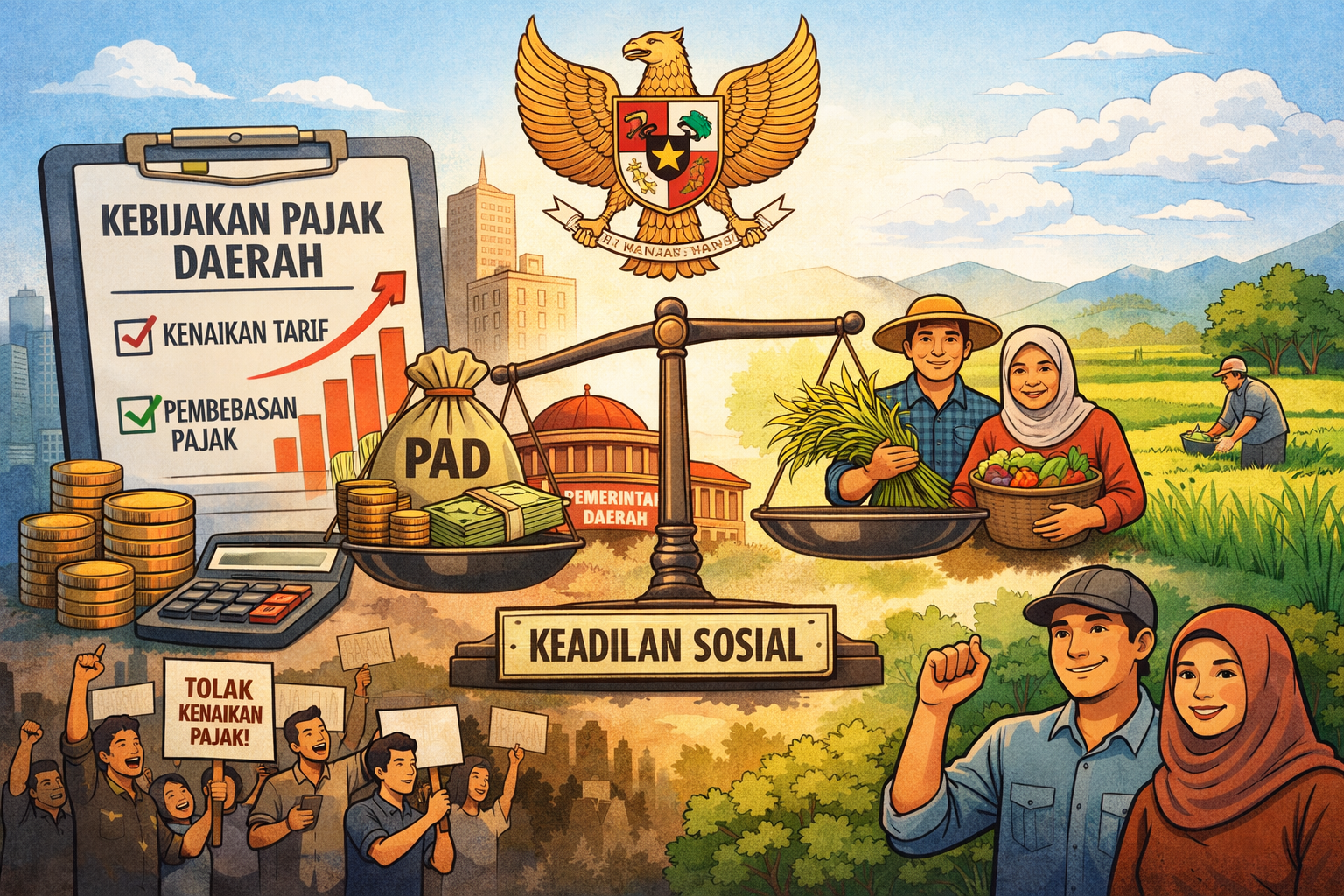 Otonomi daerah merupakan salah satu pilar penting dalam sistem ketatanegaraan Indonesia pasca reformasi. Melalui otonomi daerah, pemerintah daerah diberikan kewenangan untuk mengatur dan mengurus urusan pemerintahan, termasuk dalam bidang perpajakan daerah. Kewenangan tersebut tidak hanya bersifat administratif, melainkan mencerminkan pilihan politik hukum daerah dalam menentukan arah kebijakan fiskal dan pembangunan. Pajak daerah memiliki posisi strategis sebagai sumber pendapatan asli...